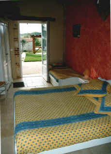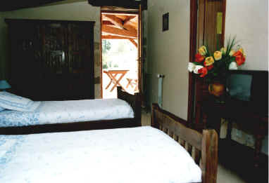 Chambre "Coucher de soleil" De cette chambre, donnant sur la terrasse couverte, face à la piscine, vous pourrez admirer le coucher de soleil (2lits de 90 cm séparés par une pierre murale)